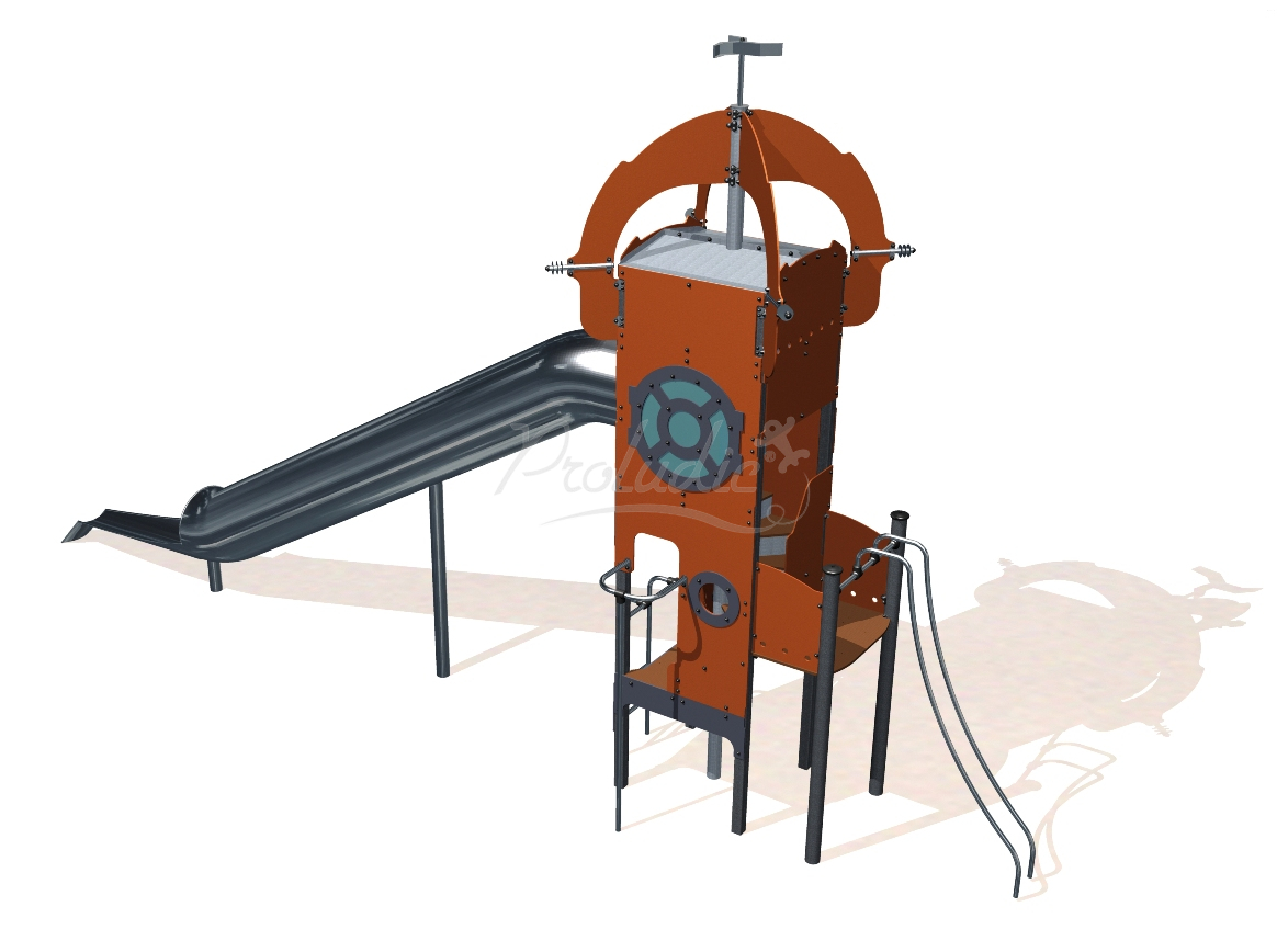 Platformy zawieszone są na różnych wysokościach, dzięki temu dzieci podczas zabawy mogą przełamywać swoje lęki i bariery związane z wysokością. Dodatkowo do dyspozycji jest szybki zjazd po rurze.
