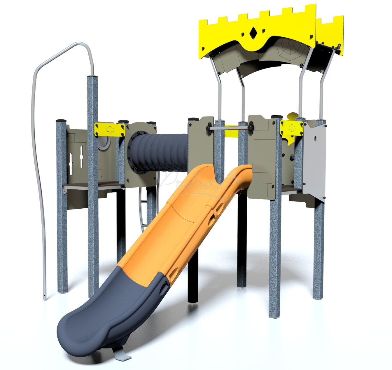 Do jednej platformy przymocowana jest zjeżdżalnia, natomiast do z drugiej dzieci mogą zjechać po stalowej rurce zwanej także zjazdem strażackim.